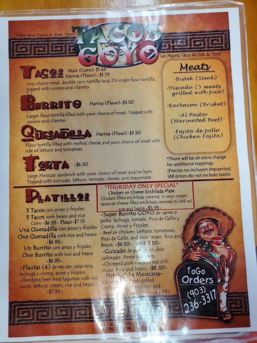 For anyone in search of authentic Mexican cuisine in East Texas, Tacos Goyo stands out as a top choice. With glowing reviews highlighting its quality and care in every dish, it’s clear that Tacos Goyo has earned its reputation as a beloved spot for both quick bites and hearty meals. Whether you’re a local or just passing through, make sure to add this eatery to your list of must-visit destinations.