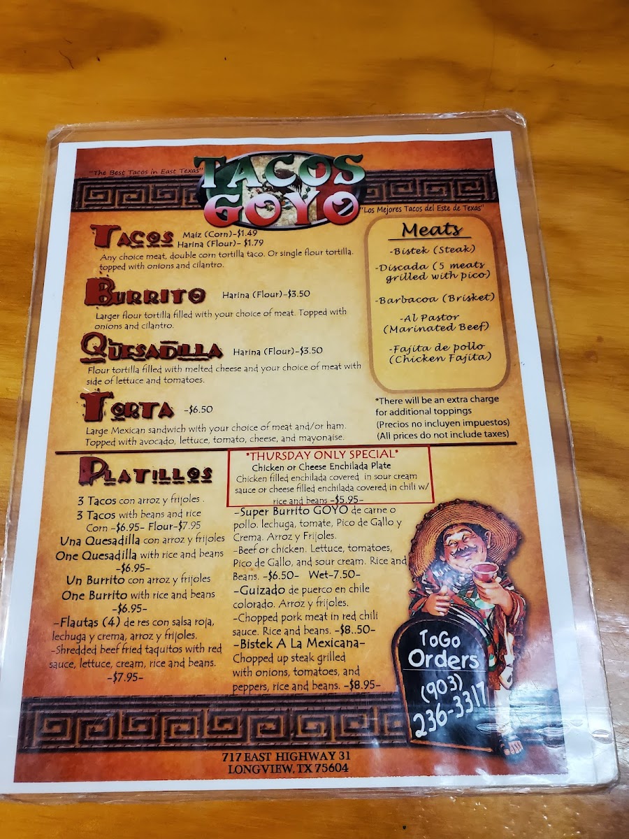 Welcome to Tacos Goyo, your ultimate destination for authentic Mexican cuisine located at 717 TX-31, Longview, TX. This beloved eatery has earned rave reviews for its delicious offerings and warm atmosphere. Customers praise the phenomenal tortas, especially with barbacoa meat, and are continuously delighted by the flavor-packed quesabirria tacos and comforting menudo.